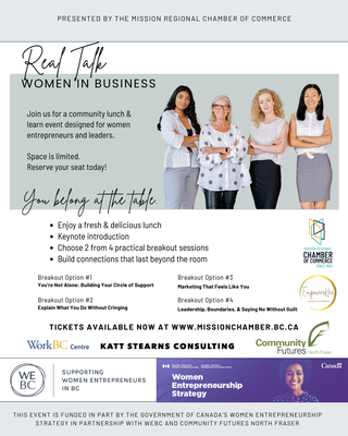 *This event is Funded by the Government of Canada’s Women Entrepreneurship Strategy in partnership with WeBC and with support from Community Futures North Fraser.